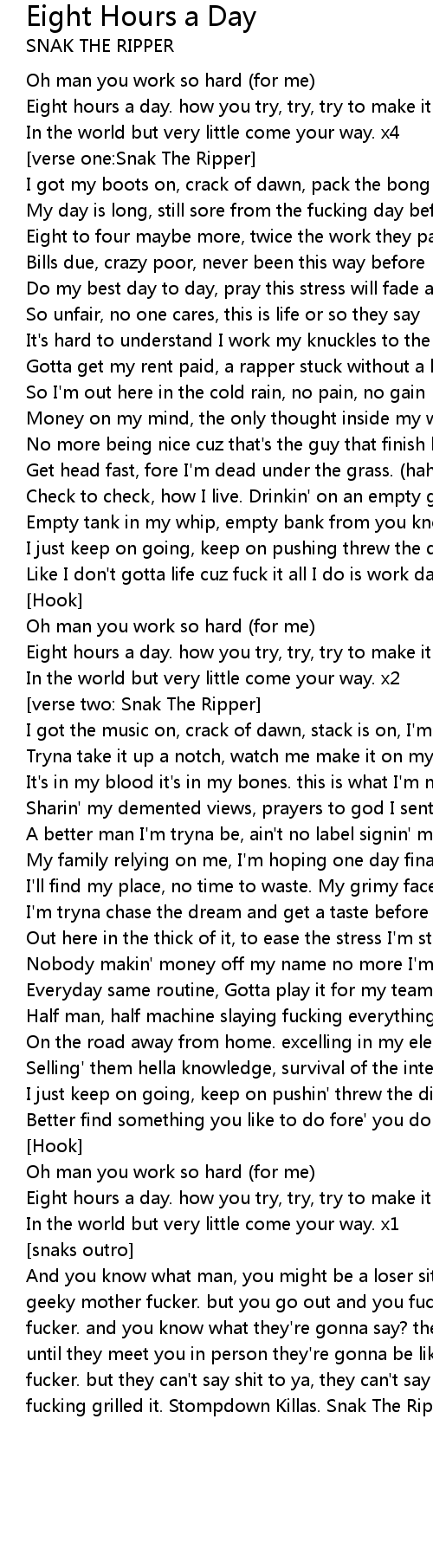 And you know what man, you might be a loser sitting at home saying I'm a fat geeky mother fucker. but you go out and you fuckin make your name known mother fucker. and you know what they're gonna say? they're gonna say awe he's so dope! until they meet you in person they're gonna be like, he's a fat geeky mother fucker. but they can't say shit to ya, they can't say shit to ya because you fucking grilled it. Stompdown Killas. Snak The Ripper reporting live..