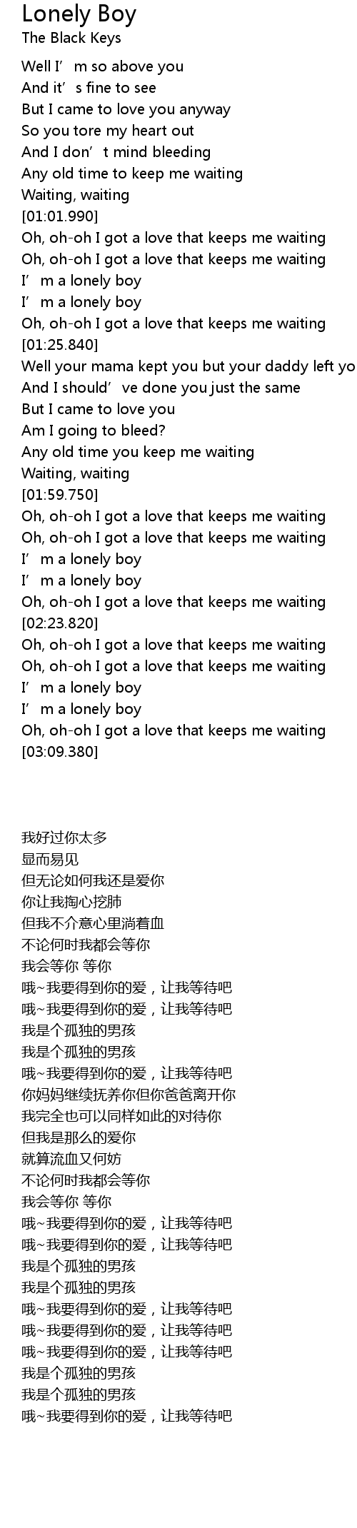| [03:00.630] | I’m a lonely boy |