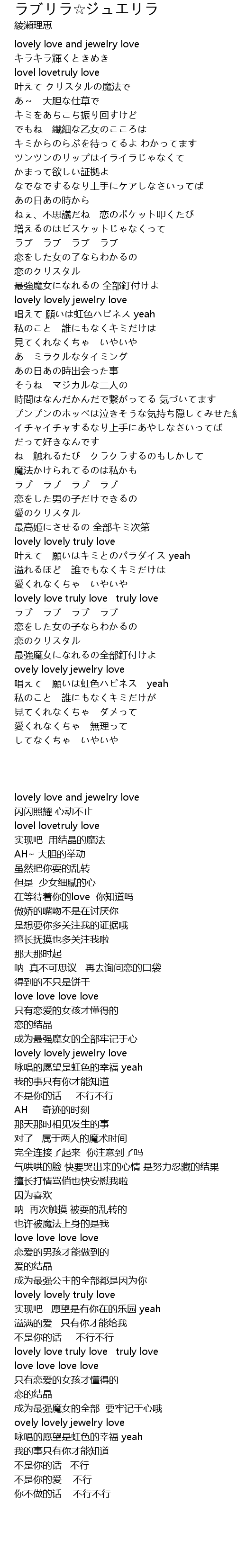 | Song | ラブリラ☆ジュエリラ |