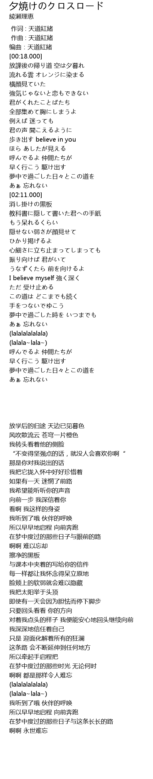 | [00:10.000] | 编曲:天道紅緒 |