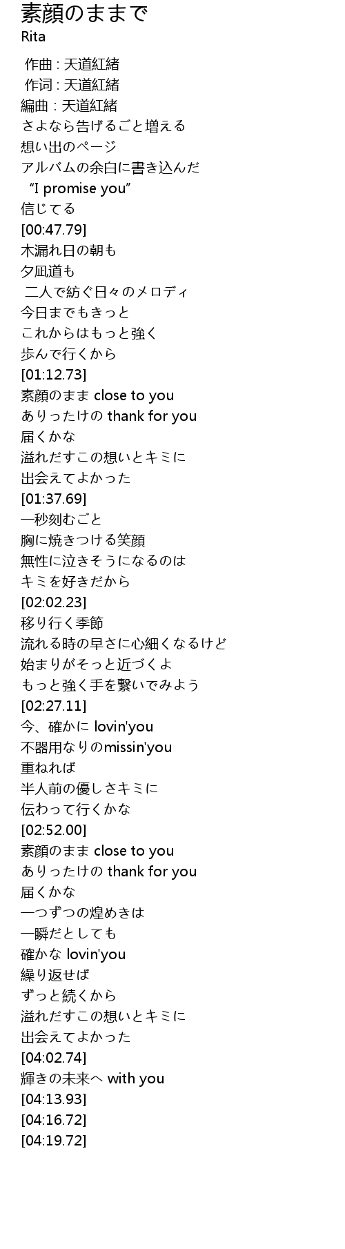 | [02:17.50] | もっと強く手を繋いでみよう |