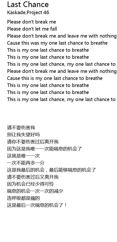 Cause this is my one last chance to breathe |