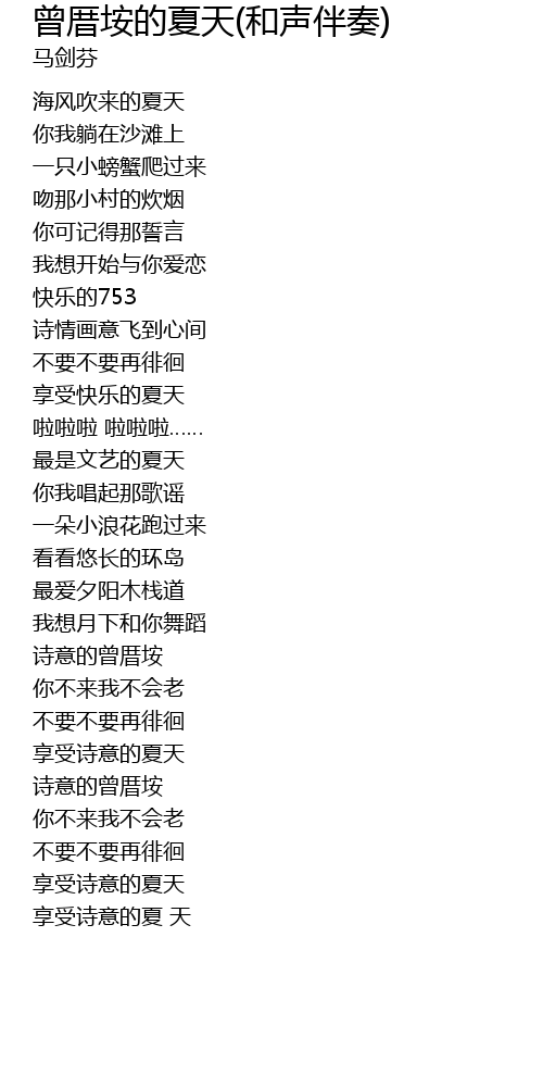 | [00:56.91] | xiǎng shòu kuài lè de xià tiān |