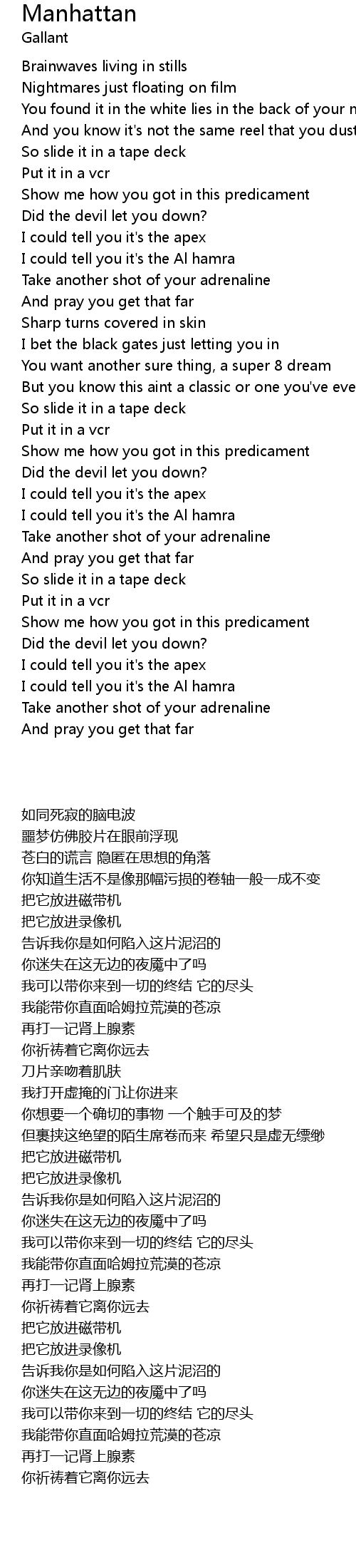 | [00:48.600] | Show me how you got in this predicament |