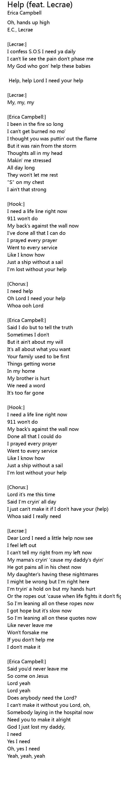 [Chorus:] Help, help Lord I need your help