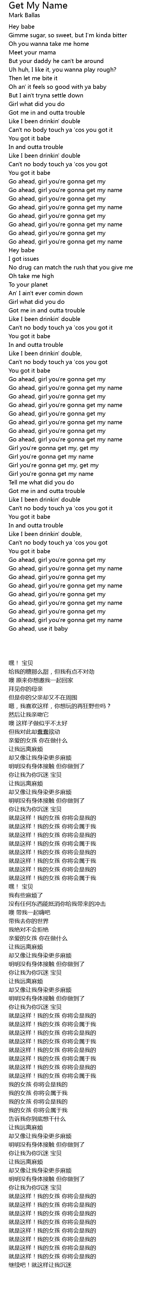 Girl you're gonna get my name |