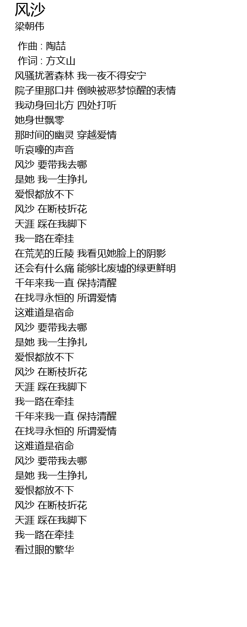 | [00:57.24] | fēng shā yào dài wǒ qù nǎ |