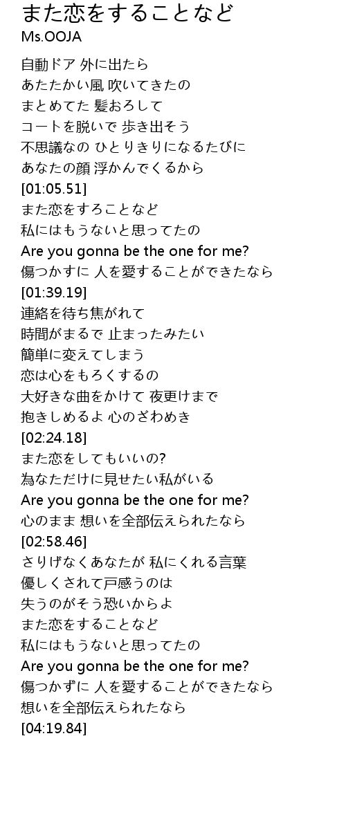 | [02:40.41] | Are you gonna be the one for me? |