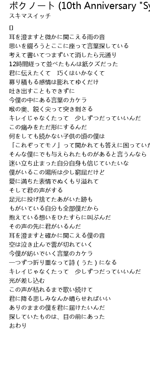 | Song | ボクノート (10th Anniversary "Symphonic Sound Of Sukimaswitch" / Live) |