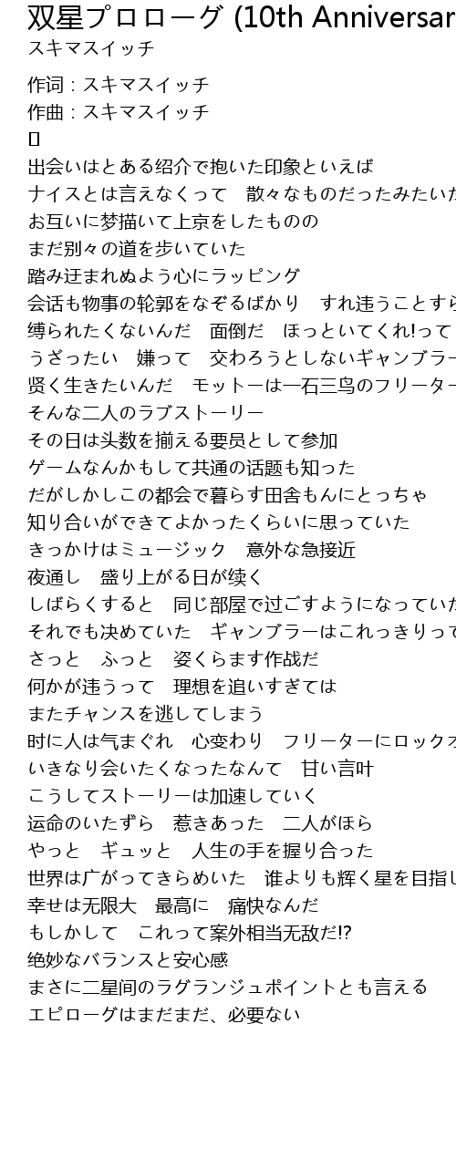| Song | 双星プロローグ (10th Anniversary "Symphonic Sound Of Sukimaswitch" / Live) |