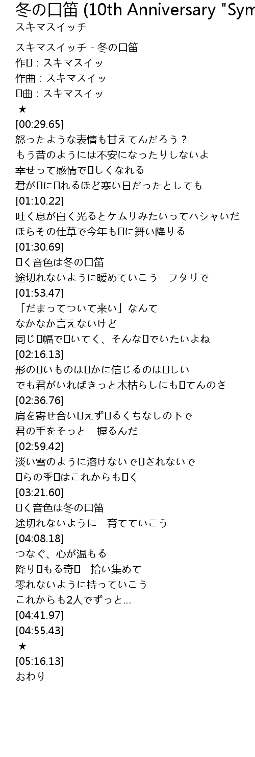 | [00:00.00] | スキマスイッチ - 冬の口笛 |