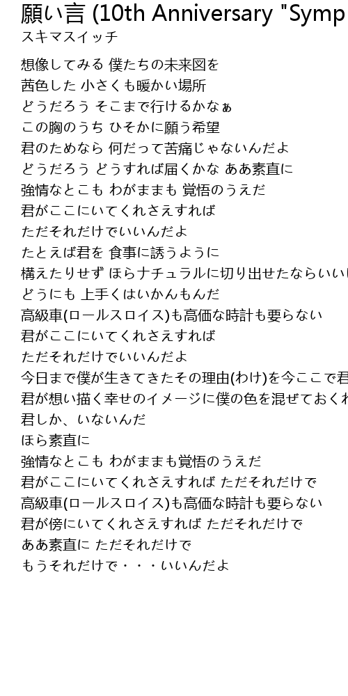 | Song | 願い言 (10th Anniversary "Symphonic Sound Of Sukimaswitch" / Live) |