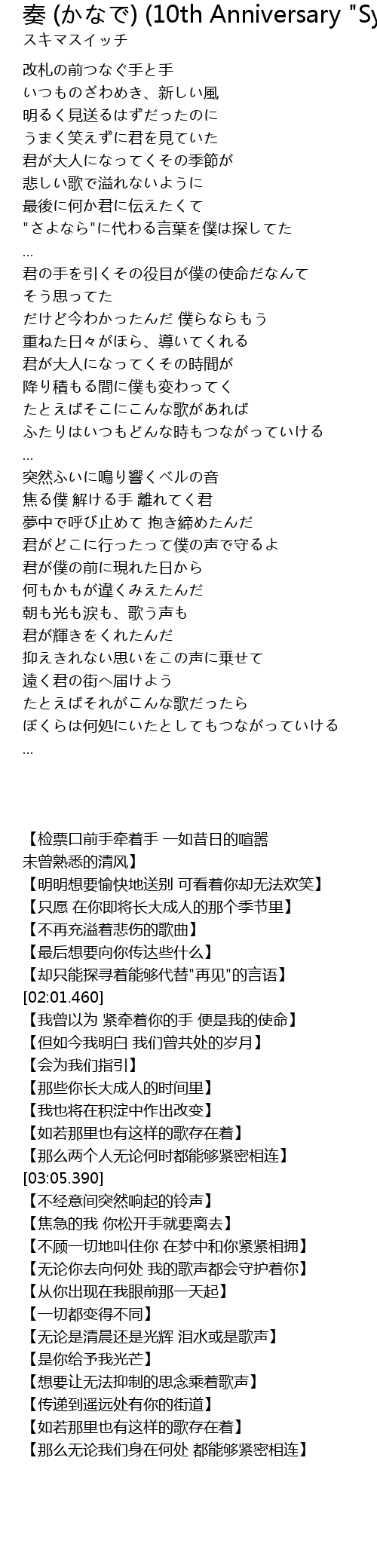 | Song | 奏 (かなで) (10th Anniversary "Symphonic Sound Of Sukimaswitch" / Live) |