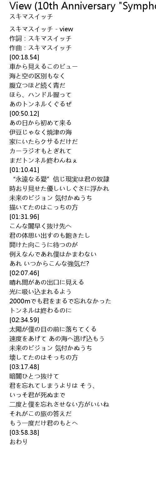 | Song | View (10th Anniversary "Symphonic Sound Of Sukimaswitch" / Live) |