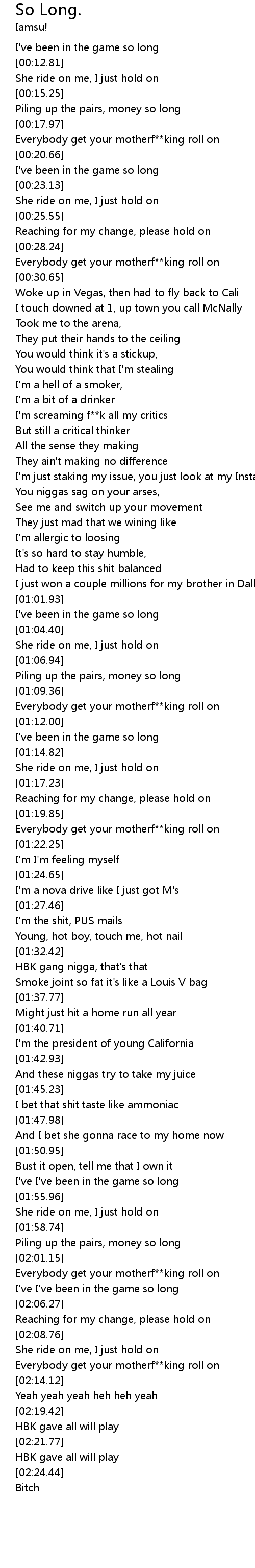 I've been in the game so long |