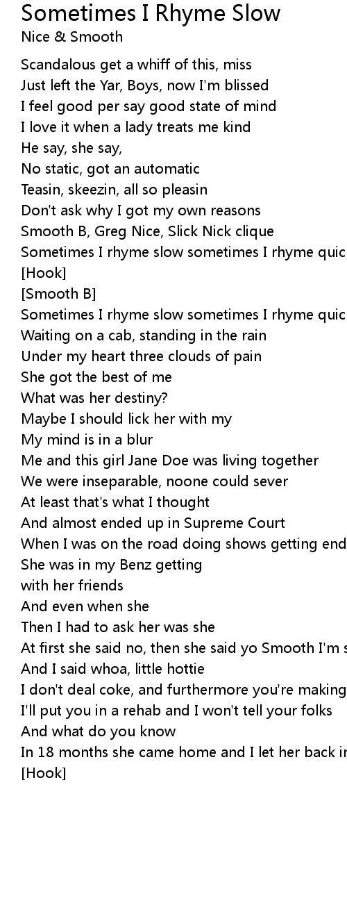 Song Sometimes I Rhyme Slow