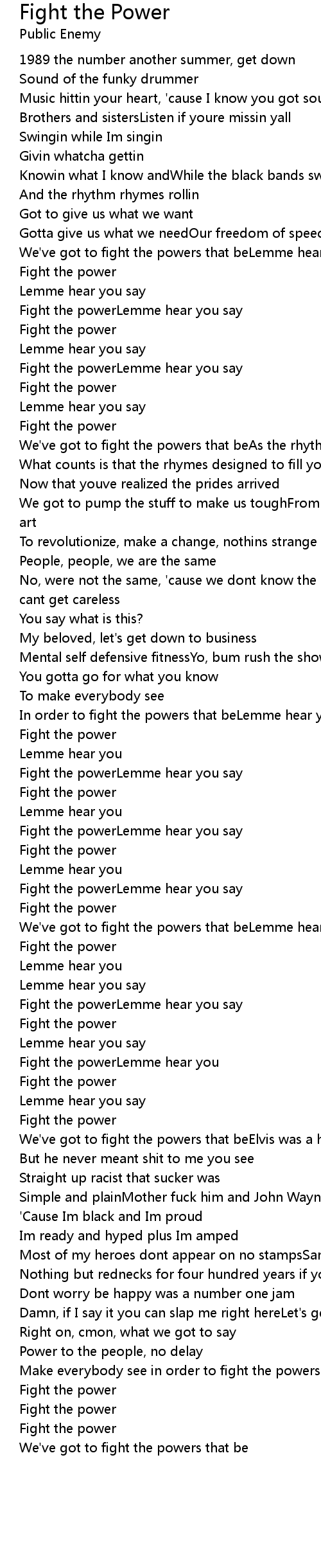 Fight the powerLemme hear you say