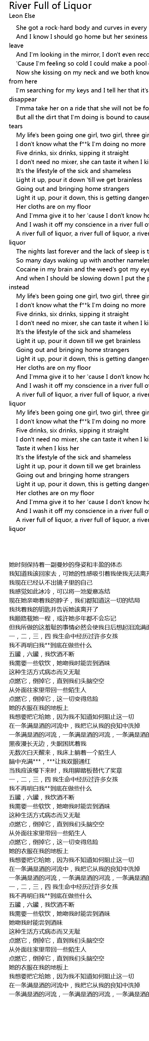 A river full of liquor, a river full of liquor, a river full of liquor |