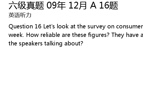 Question 16 Let's look at the survey on consumer confidence we conducted last week. How reliable are these figures? They have a 5% margin of error. What are the speakers talking about?