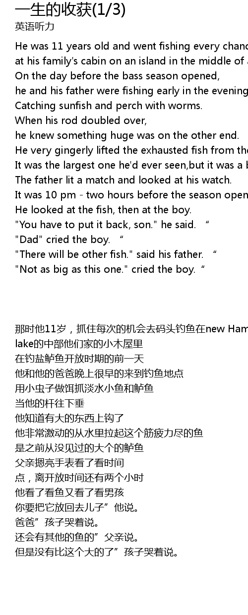 | [00:29.26] | It was the largest one he'd ever seen,but it was a bass. |