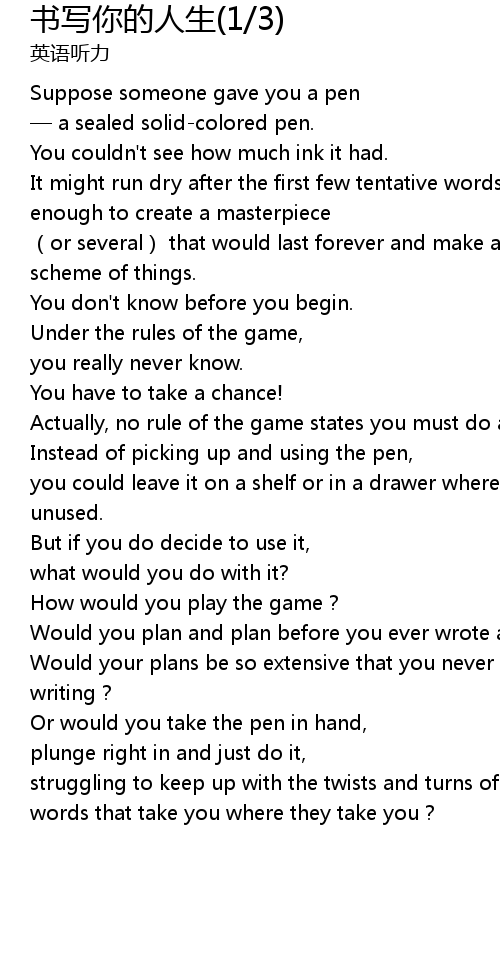 | [00:06.65] | It might run dry after the first few tentative words or last just long enough to create a masterpiece |