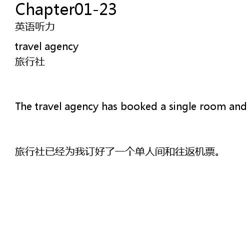 | 旅行社已经为我订好了一个单人间和往返机票。 |