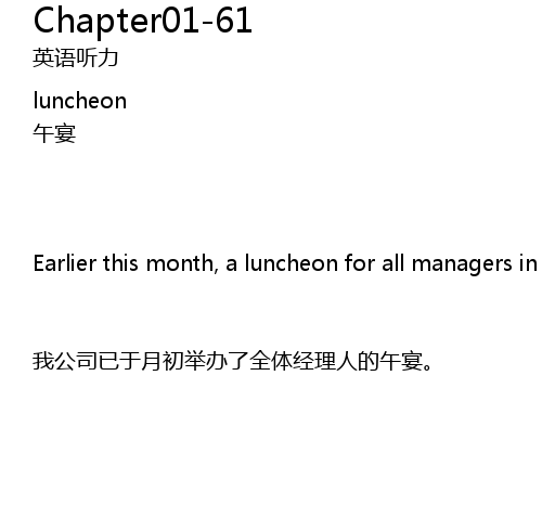 | 我公司已于月初举办了全体经理人的午宴。 |