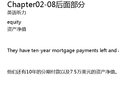 | tā men hái yǒu 10 nián de fēn qī fù kuǎn yǐ jí 7. 5 wàn měi yuán de zī chǎn jìng zhí. |
