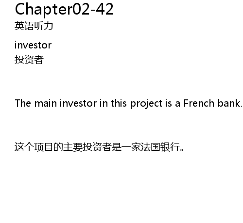 | The main investor in this project is a French bank. | |