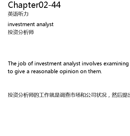 | 投资分析师的工作就是调查市场和公司状况,然后提出合理的建议。 |