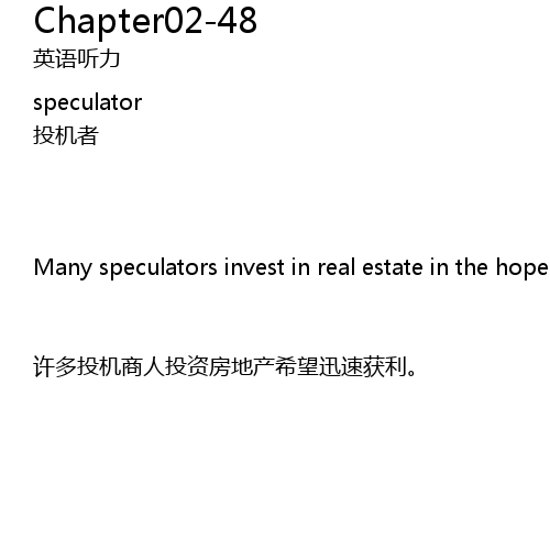 | 许多投机商人投资房地产希望迅速获利。 |