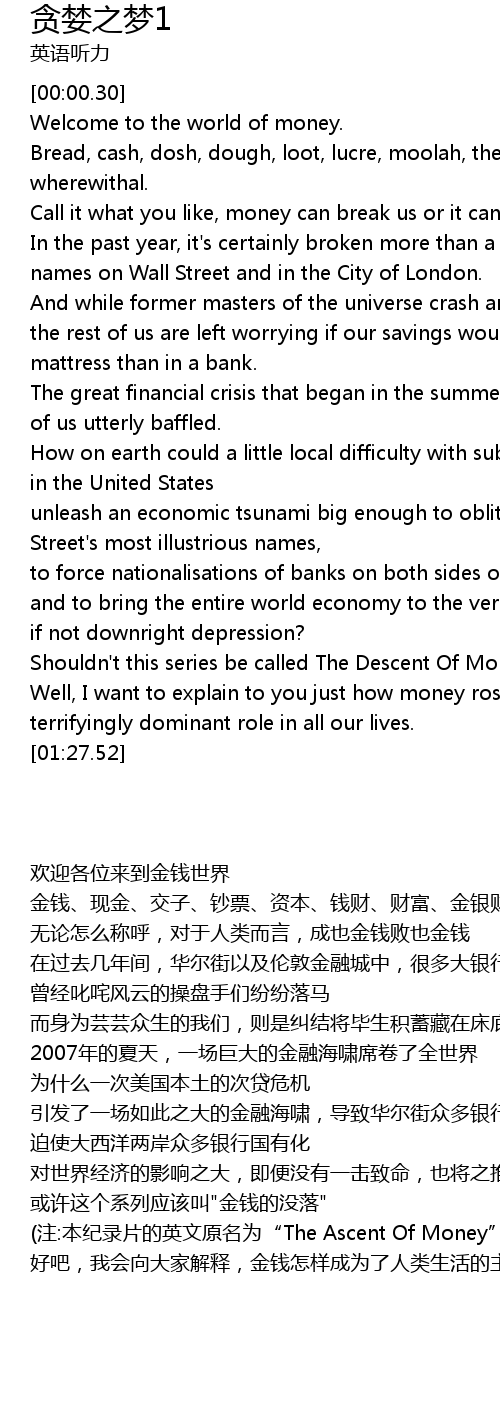 | [01:18.94] | Well, I want to explain to you just how money rose to play such a terrifyingly dominant role in all our lives. |