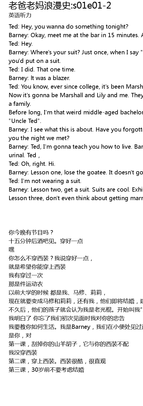 | [00:35.33] | Barney: Ted, I' m gonna teach you how to live. Barney, We met at the urinal. Ted, |