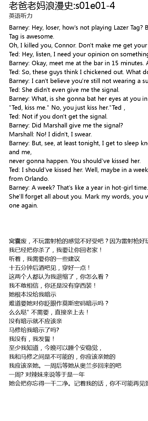 | [00:51.97] | Barney: A week? That's like a year in hot-girl time. |