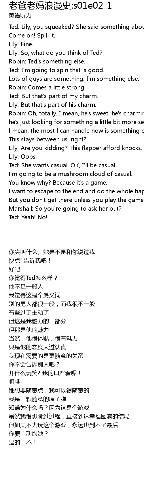 | [00:40.06] | Ted: She wants casual. OK, I'll be casual. |