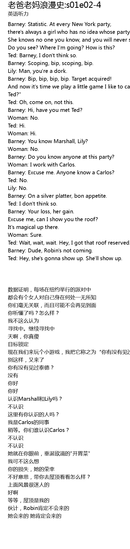 | [00:30.60] | Barney: Do you know anyone at this party? |