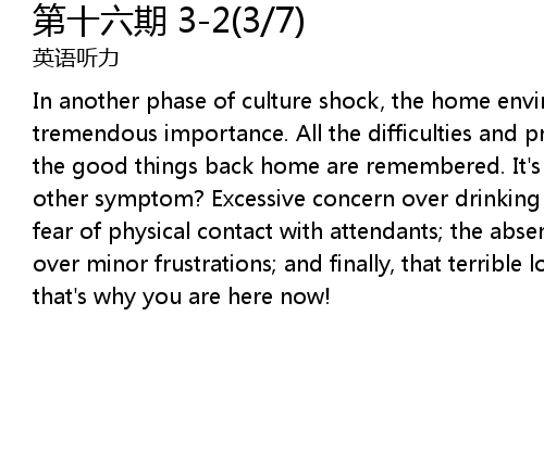 | In another phase of culture shock, the home environment suddenly assumes a tremendous importance. All the difficulties and problems are forgotten and only the good things back home are remembered. It's like an illness. Somewhat. Any other symptom? Excessive concern over drinking water, food, dishes, and bedding; fear of physical contact with attendants; the absent-minded stare; fits of anger over minor frustrations; and finally, that terrible longing to be back home. So, that's why you are here now! |