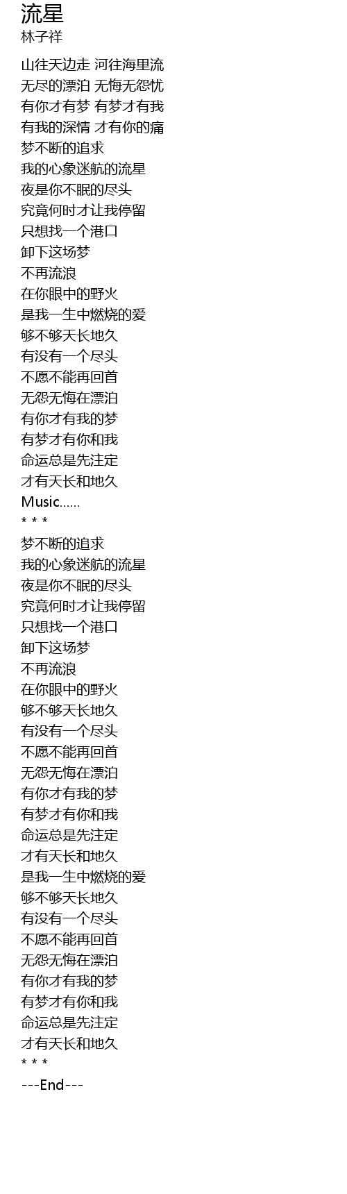 | [00:25.12] | 无尽的漂泊 无悔无怨忧 |