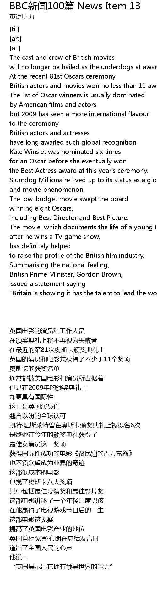 | [00:09.66] | British actors and movies won no less than 11 awards. |