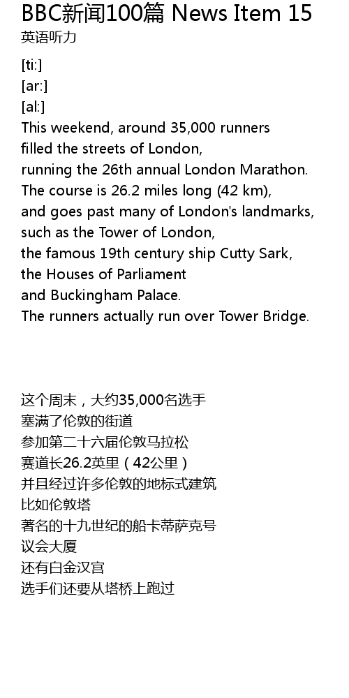 | [00:23.85] | The runners actually run over Tower Bridge. |