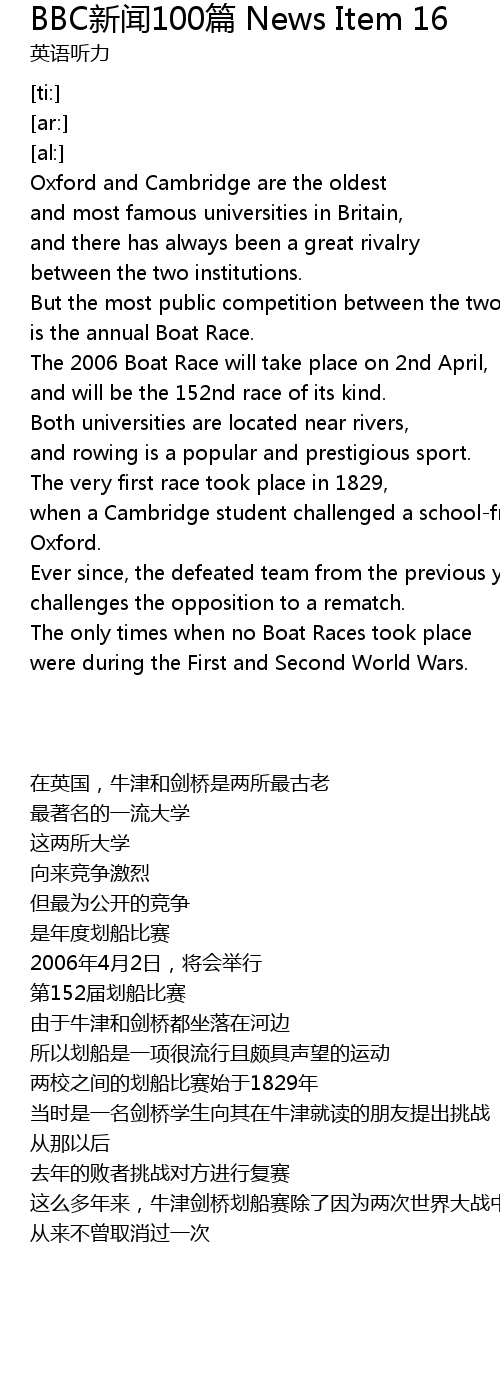| [00:11.23] | is the annual Boat Race. |