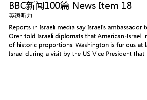 | Reports in Israeli media say Israel' s ambassador to the United States Michael Oren told Israeli diplomats that AmericanIsraeli relations were facing a crisis of historic proportions. Washington is furious at last week' s announcement by Israel during a visit by the US Vice President that more |