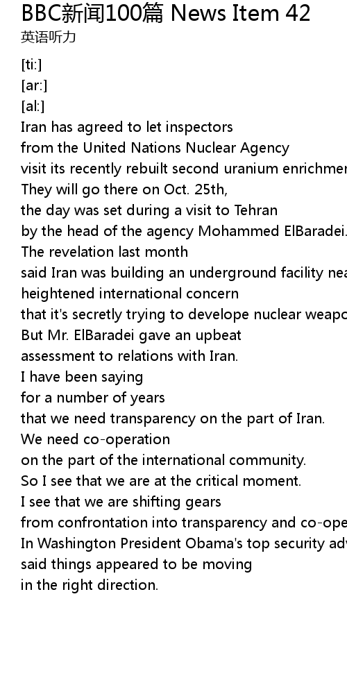 | [00:00.00] | Iran has agreed to let inspectors |
