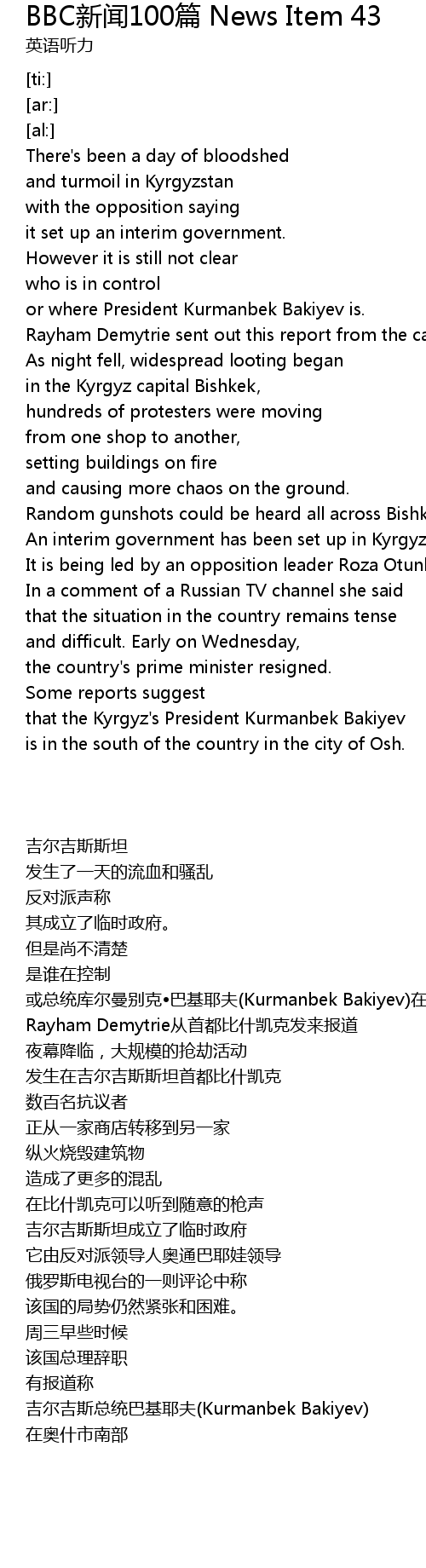 | [00:30.42] | An interim government has been set up in Kyrgyzstan. |
