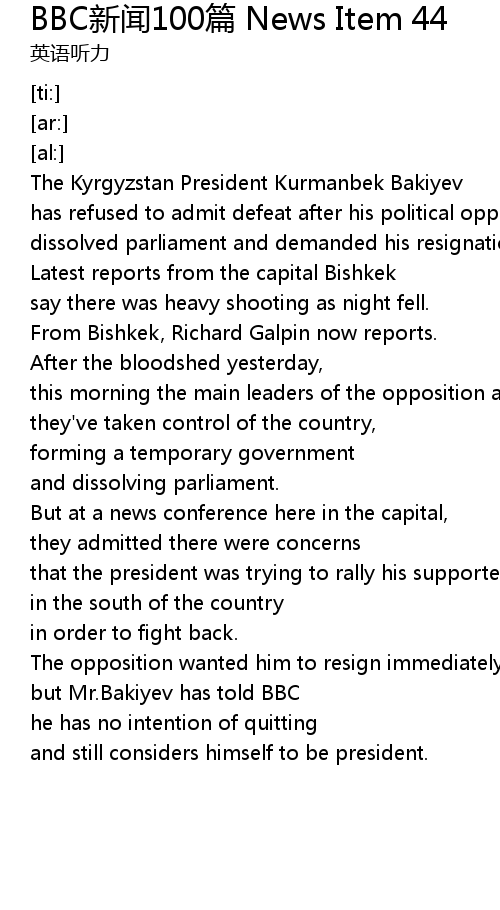 | [00:38.13] | but Mr.Bakiyev has told BBC |