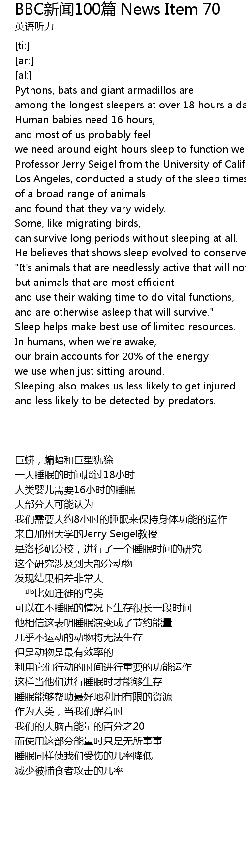 | [00:25.63] | He believes that shows sleep evolved to conserve energy: |