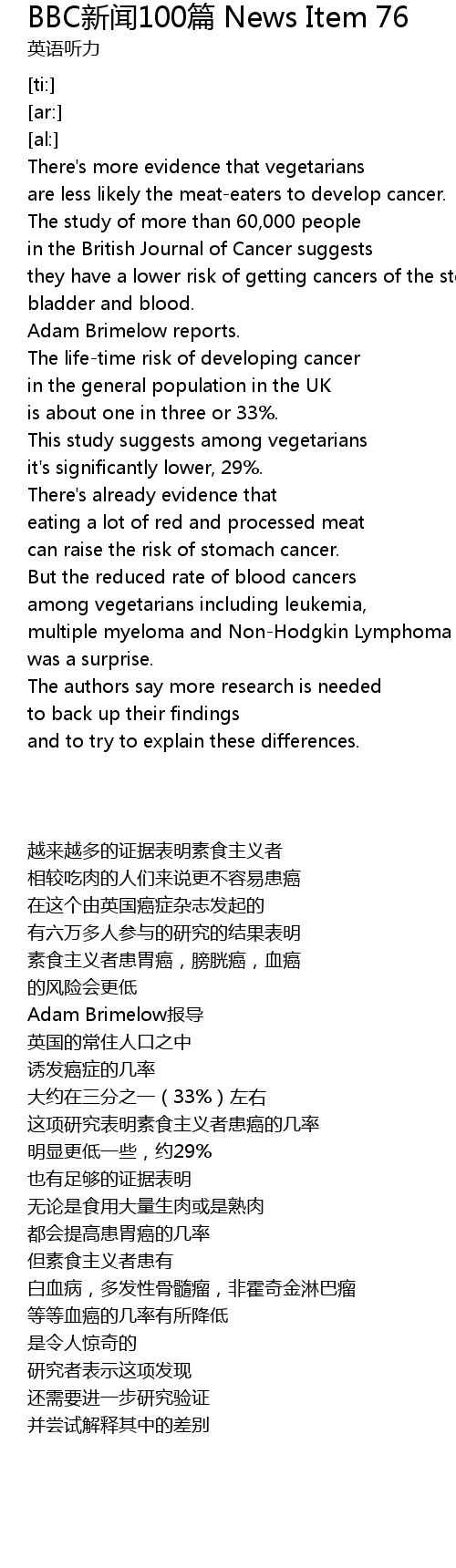 | [00:02.41] | are less likely the meat-eaters to develop cancer. |