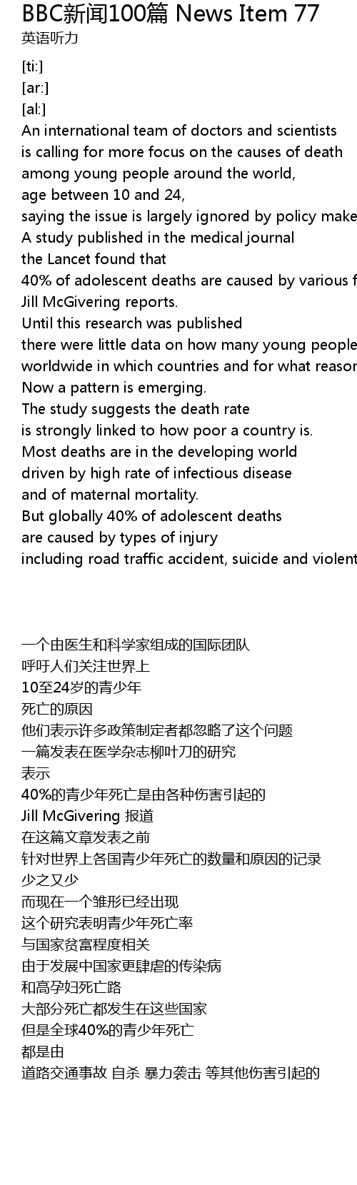 | [00:48.46] | including road traffic accident, suicide and violent attacks. |