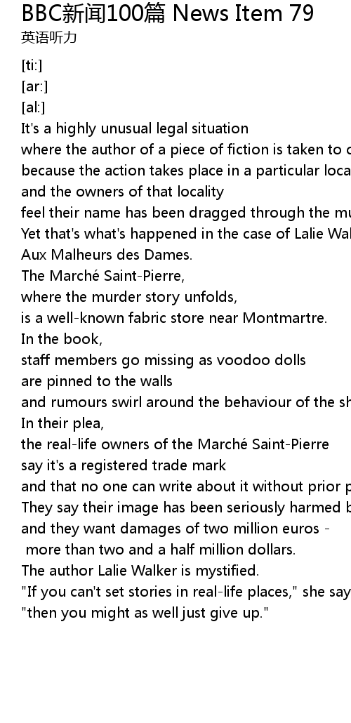 | [00:03.05] | where the author of a piece of fiction is taken to court |