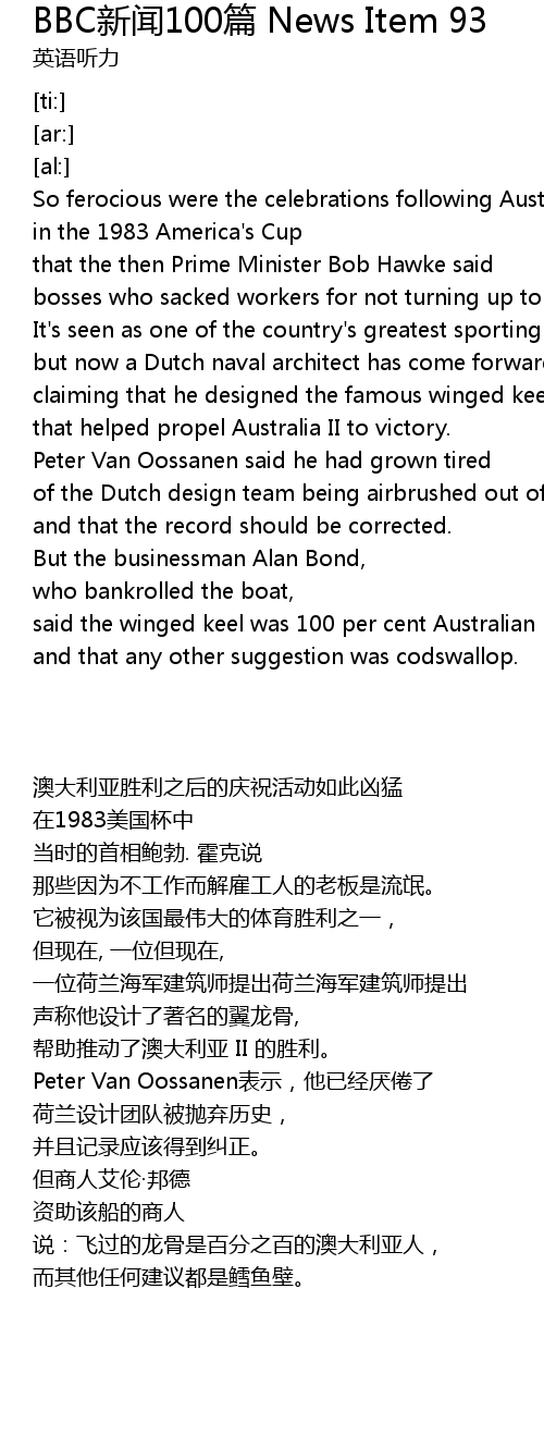 | [00:32.83] | said the winged keel was 100 per cent Australian |